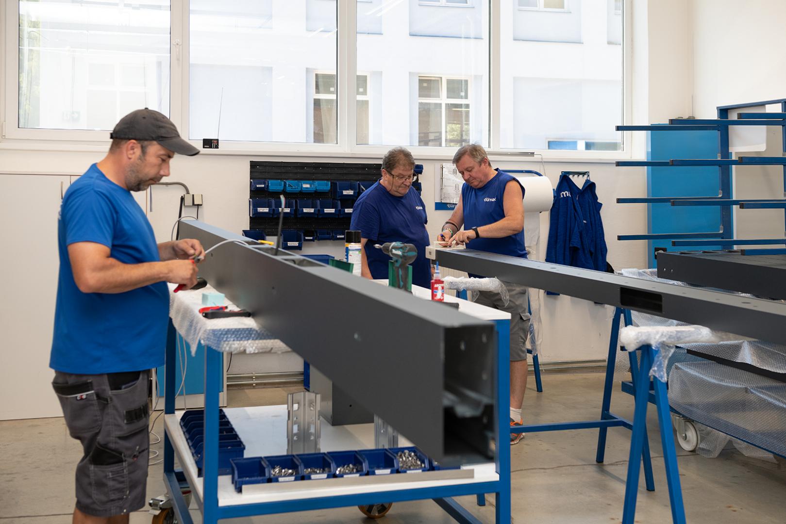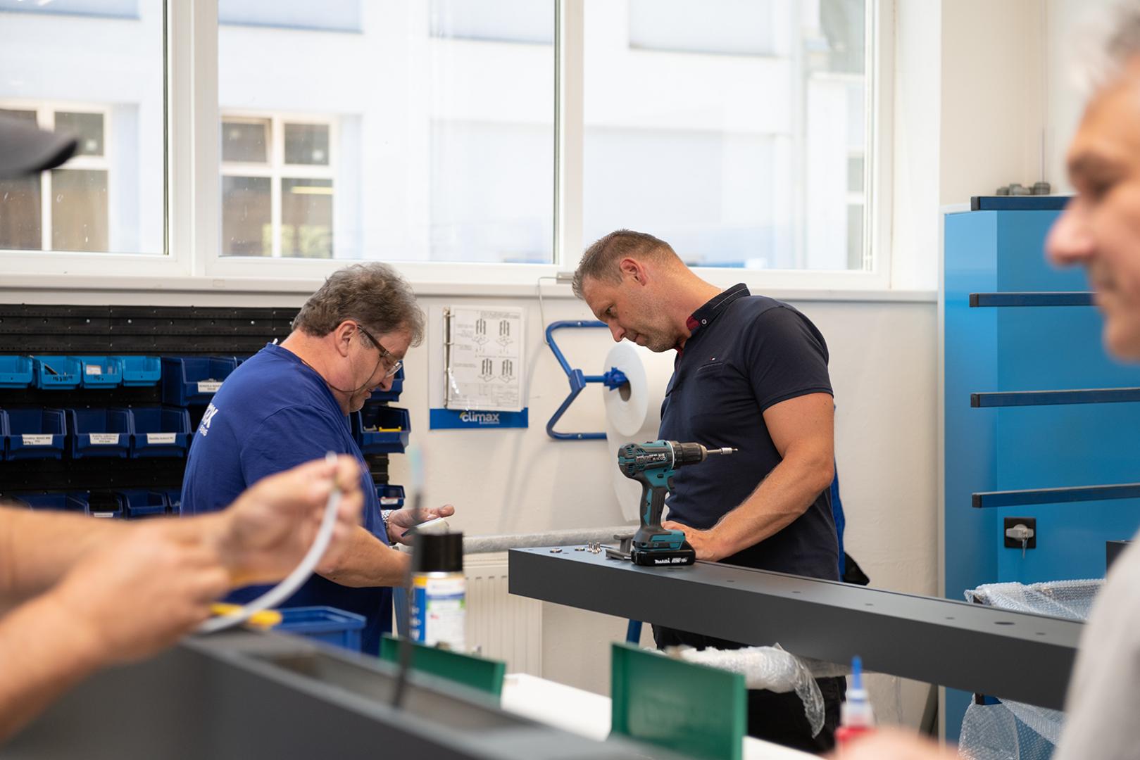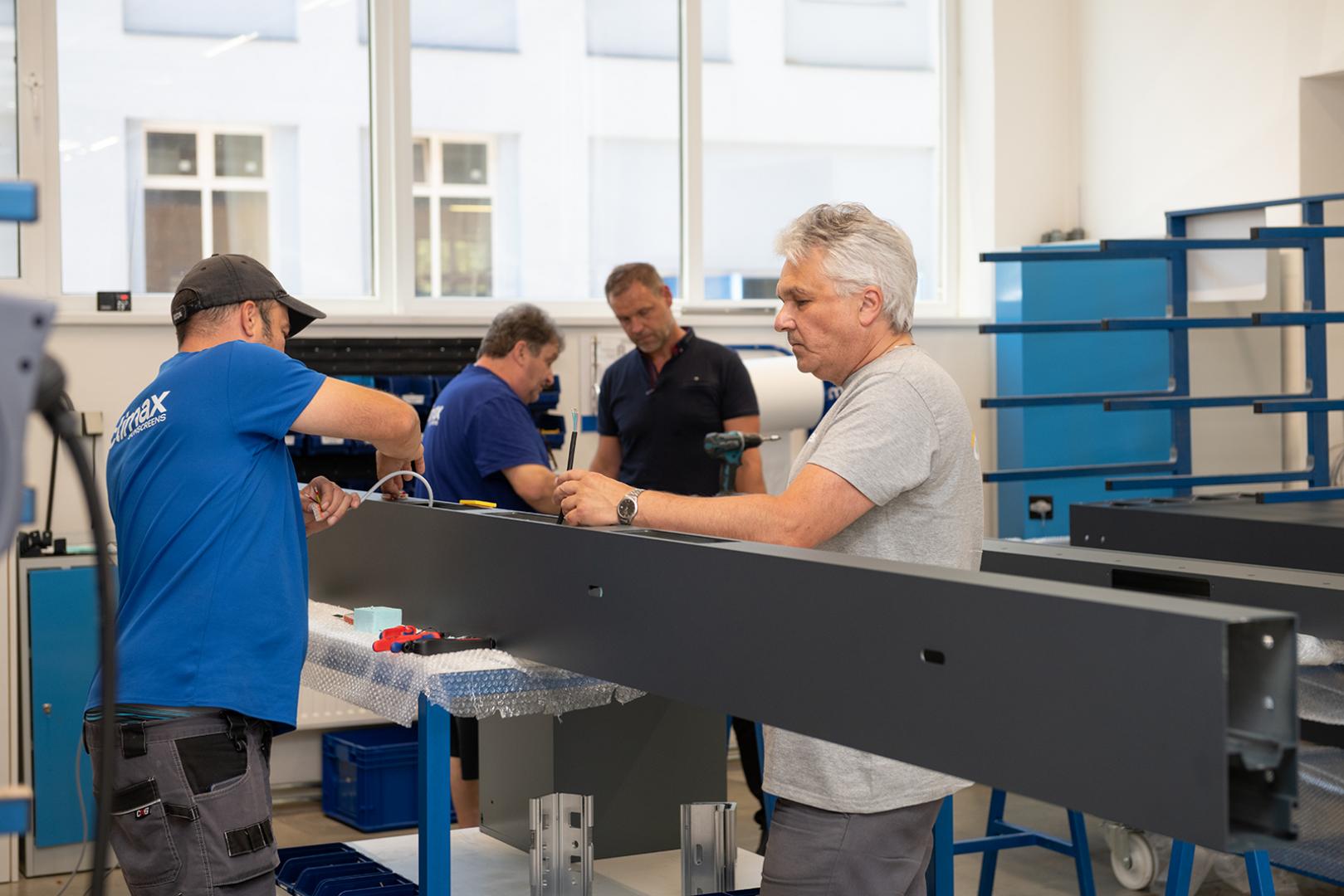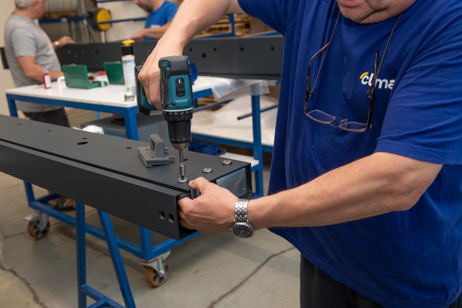 Pergola Lamelino je novinkou v nabídce stínicí techniky CLIMAXu. V hale 5 vyrábíme vlastní pergoly, které mohou být samostatně stojící nebo kotvené ke zdi. Výrobní proces zahrnuje řezání hliníkových profilů, obrábění na CNC stroji a ruční montáž jednotlivých součástí včetně elektroinstalace. Výroba byla otevřena v roce 2023.