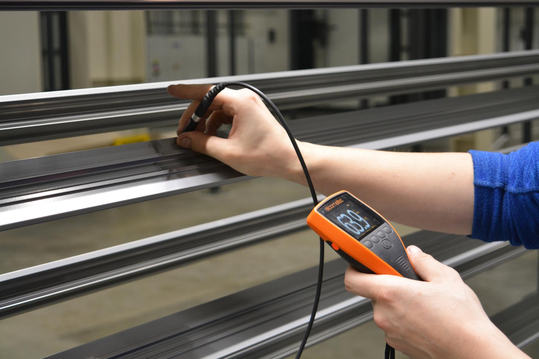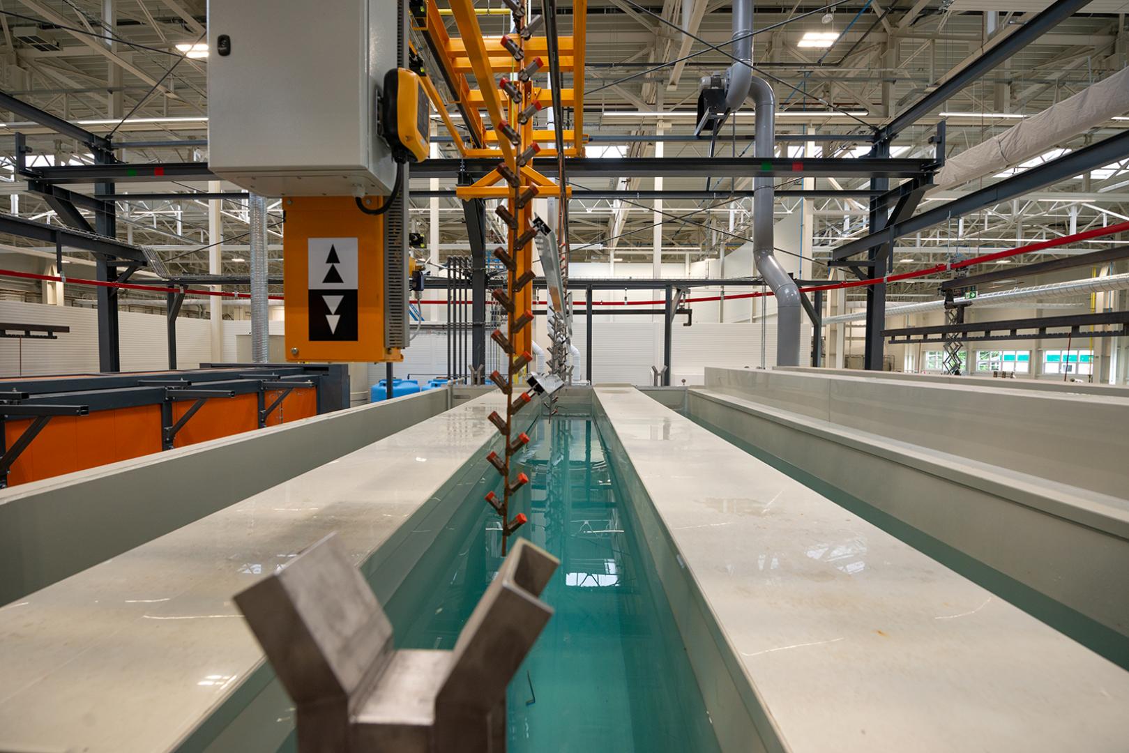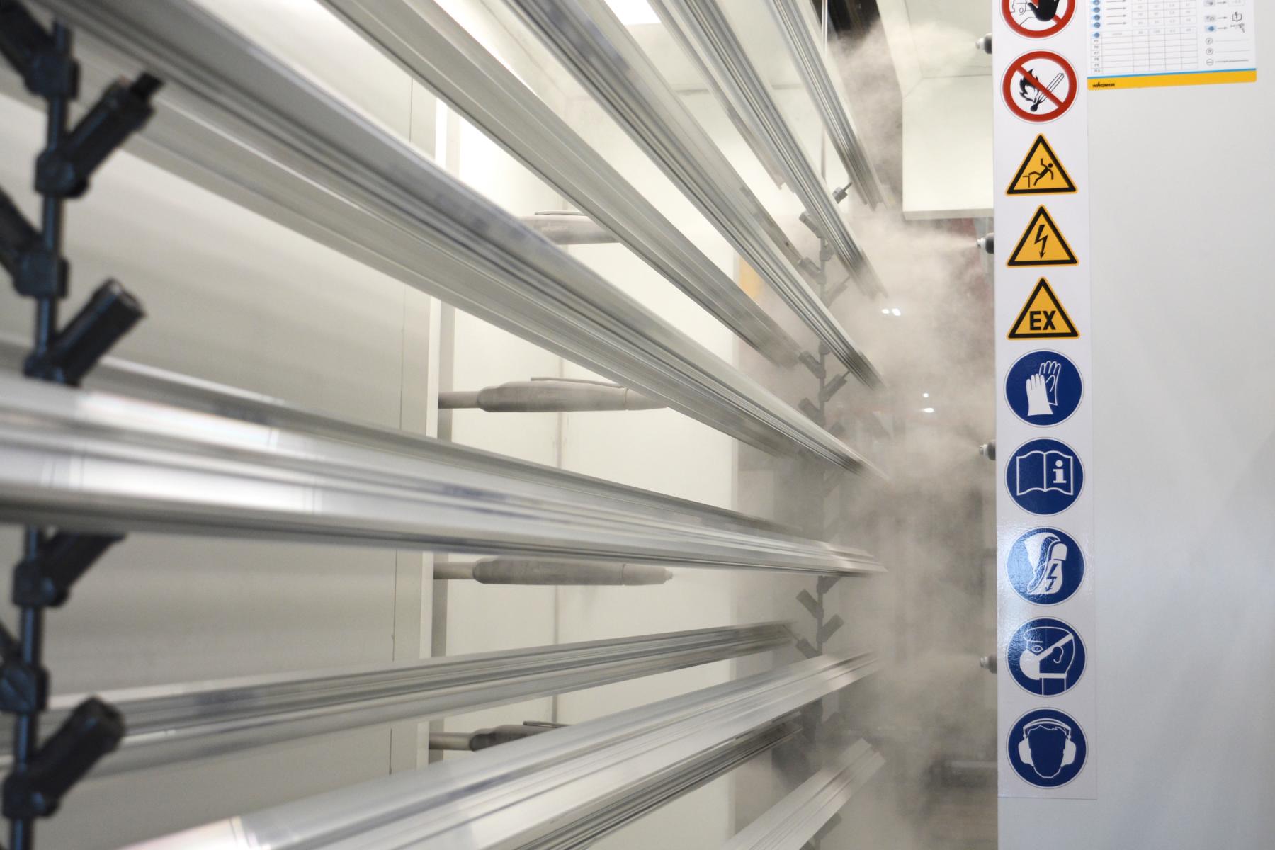 Tato část výroby zabírá plochu cca 550 m² a investice do technologií malé lakovny se vyšplhaly na 10 mil. Kč. Jedná se o zavážecí práškovou lakovnu s vanovou předúpravou pro odmaštění hliníkových materiálů. Lakujeme tady profily a komponenty do maximální délky 6 m a maximální hmotnosti 100 kg. V malé lakovně pracuje aktuálně 14 zaměstanců ve 2 směnném provozu.