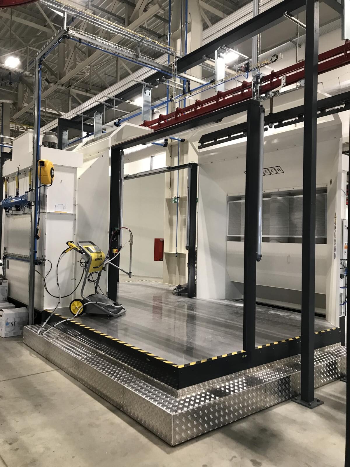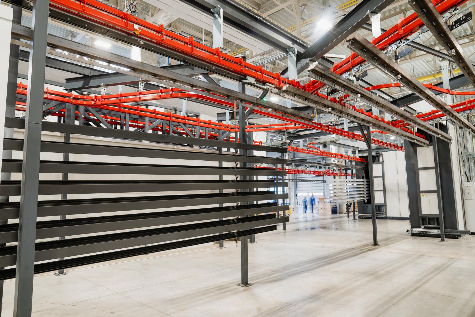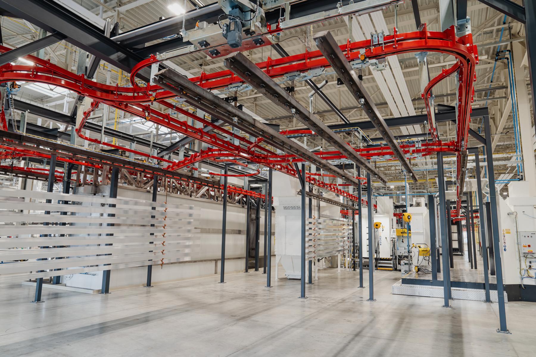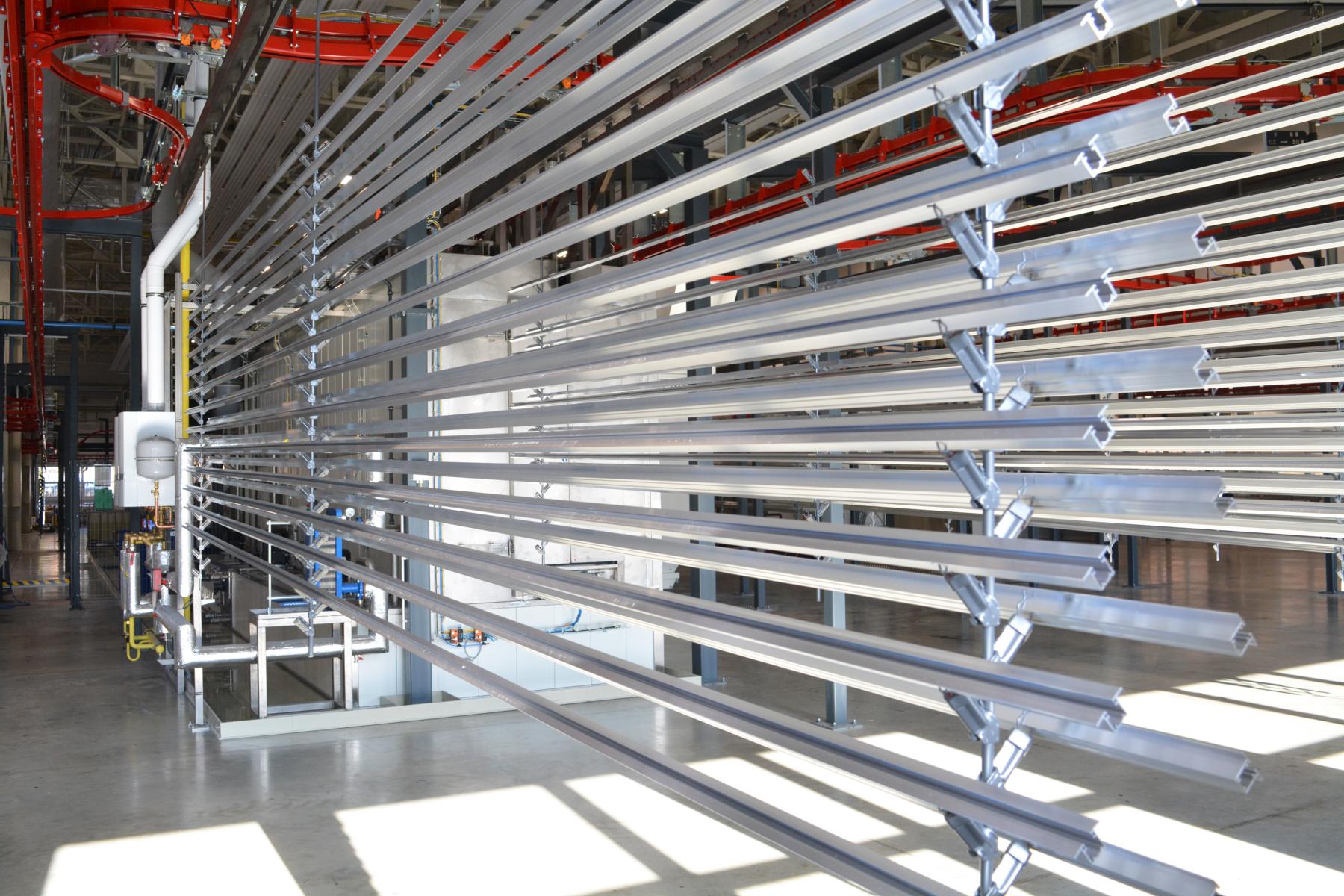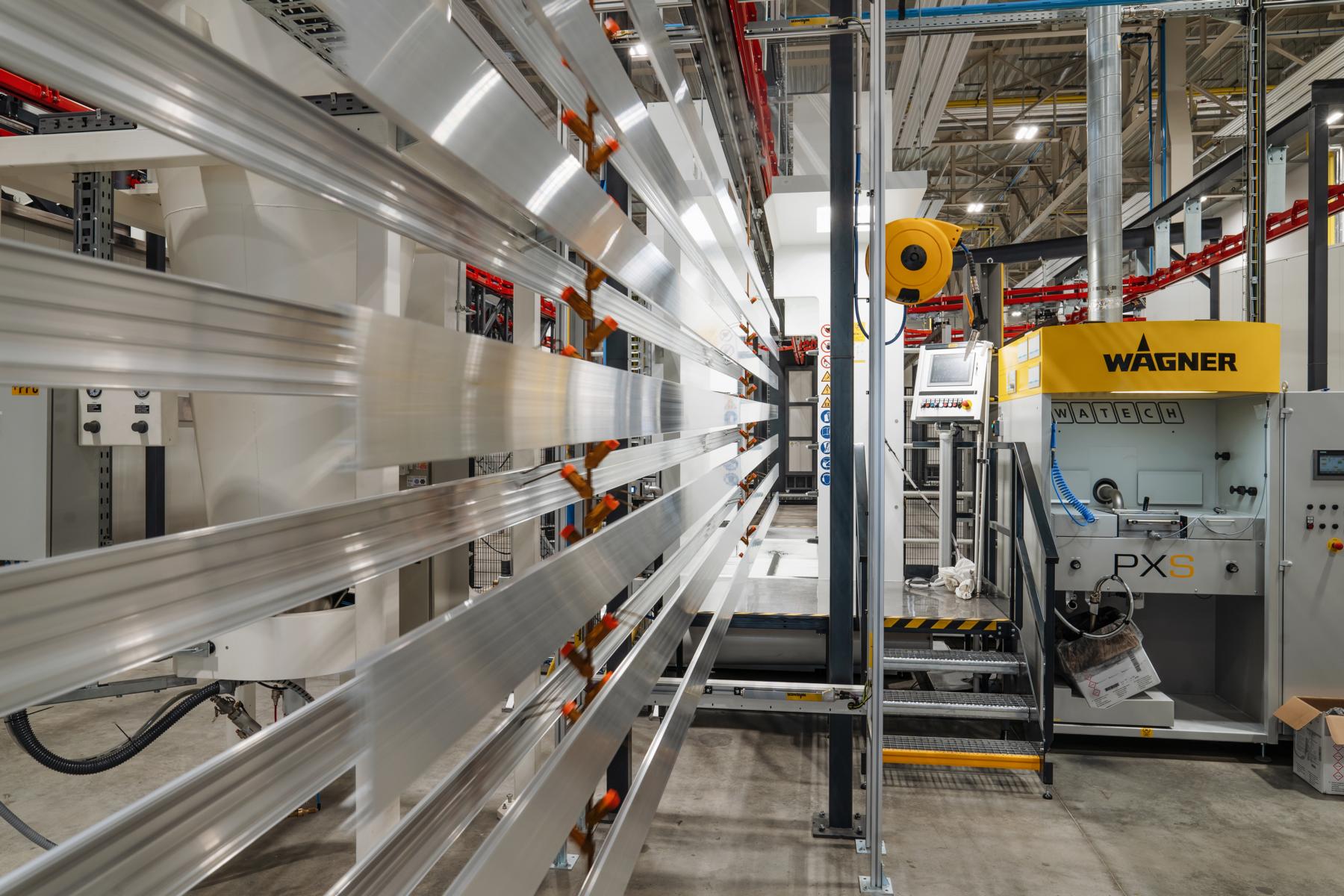 Další část haly zabírají technologie velké práškové lakovny s plochou 2 000 m². Investice do technologií velké lakovny byla ve výši okolo 45 mil. Kč. Jedná se o plně automatickou linku, kde posun vozíků zajišťují automaty. I samotný proces lakování je plně automatické komaxitování. Linka má 5 + 5 pistolí a zvládne nalakovat i větší profily do maximální délky 7,9 m. Provoz běží ve 2 směnném provozu a pracují zde téměř čtyři destíky zamětnanců.